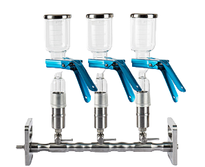 多联过滤器是实验室中的溶液过滤装置,与玻璃材质砂芯过滤装置相对比,多联过滤器更高效,更快捷,仅需一台真空泵就可同时过滤多个样品,提高了实验室工作效率。其次它的每一个滤杯下方均有独立的控制阀门,因此可支持单联和多联同时操作。本产品是我公司的自有产品,材质使用卫生级不锈钢,耐酸碱,耐腐蚀,耐高温,易于高温消毒,使分析结果更稳定。